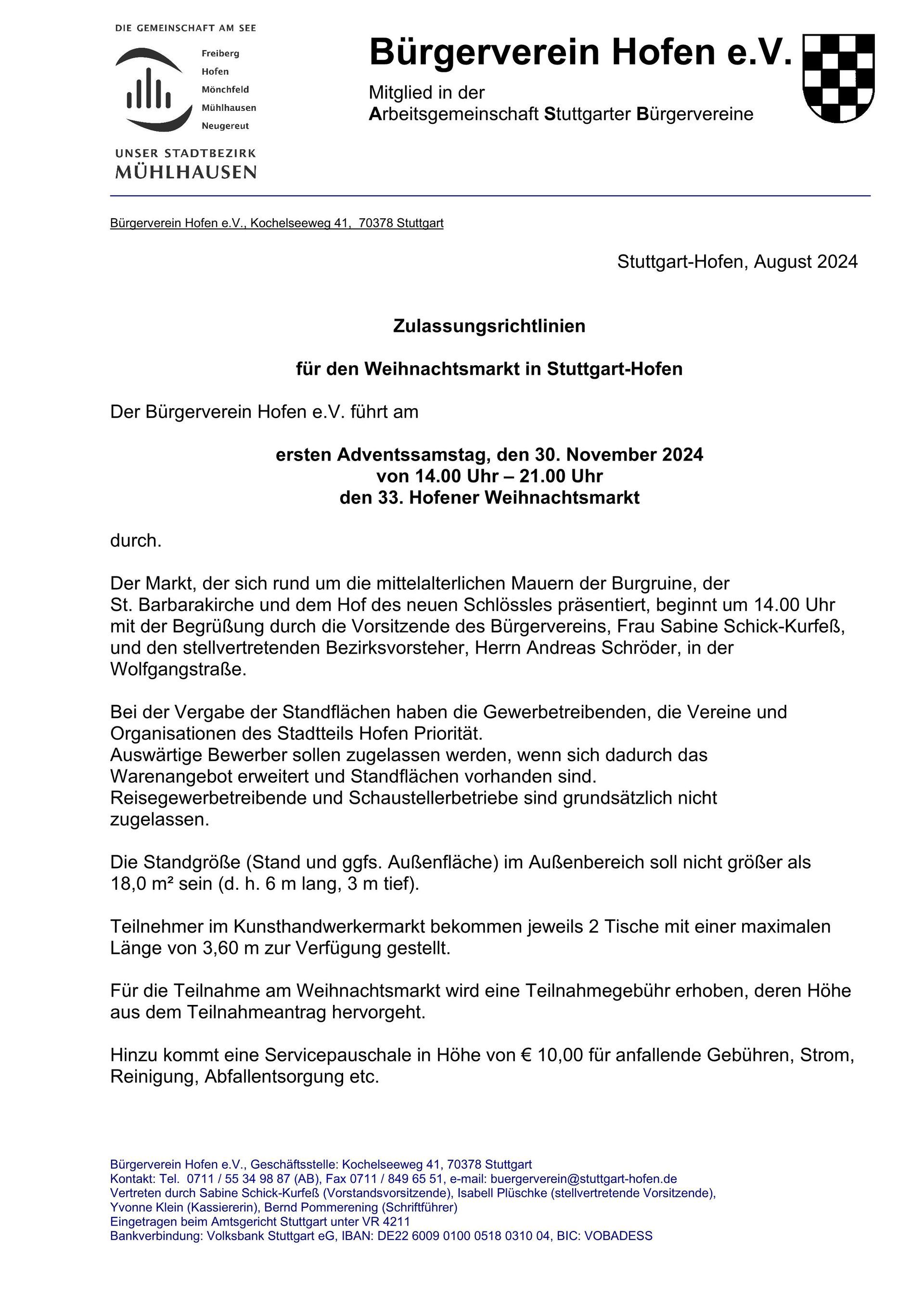 Hoffen wir also nun, dass der 33. Hofener Weihnachtsmarkt im 40. Jahr des Bürgerverein Hofen am 29. November 2025 mit repariertem Stromkasten und sanierter Musikschule wieder wie gewohnt stattfinden kann.