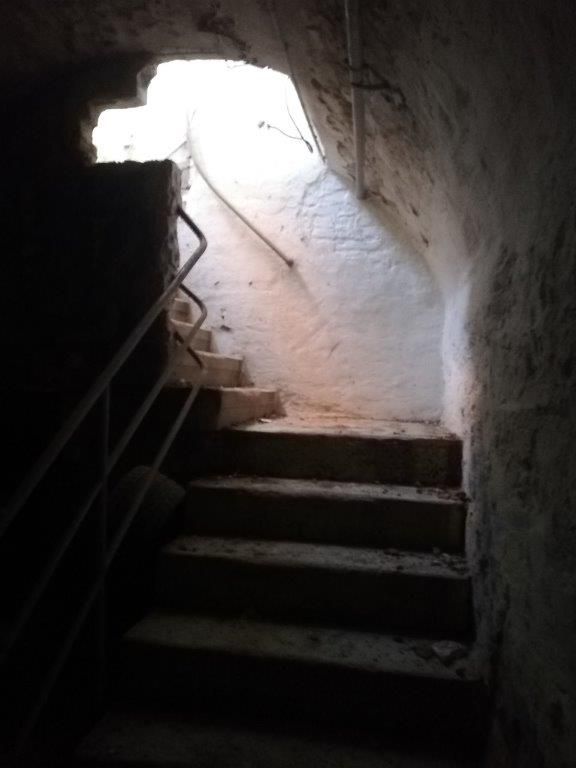 Zu sehen ist heute noch der Kartoffelkeller, der Weinkeller und die schräge Rutsche, auf der die schweren Gegenstände wie z. B. Fässer oder Kartoffelsäcke rauf- und runtergezogen wurden.