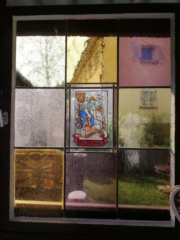 Ein "historische Keller in Hofen", die Bilder zeigen die "Katakomben" und zwei der alten Bleiglasfenster.