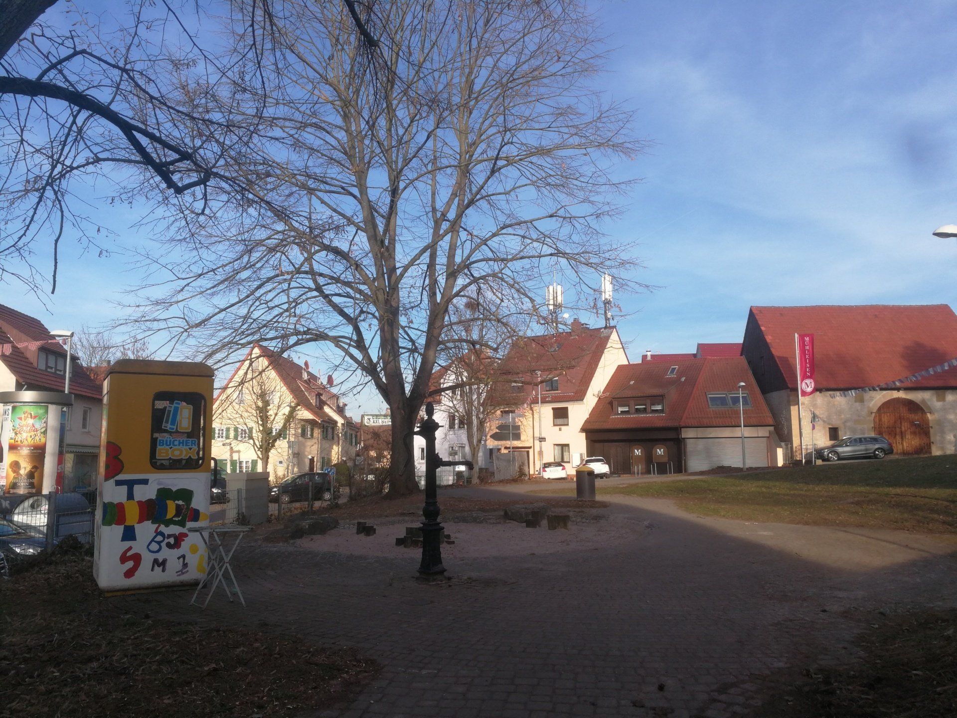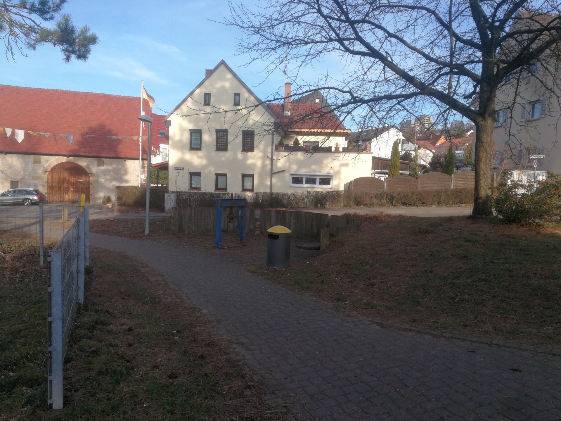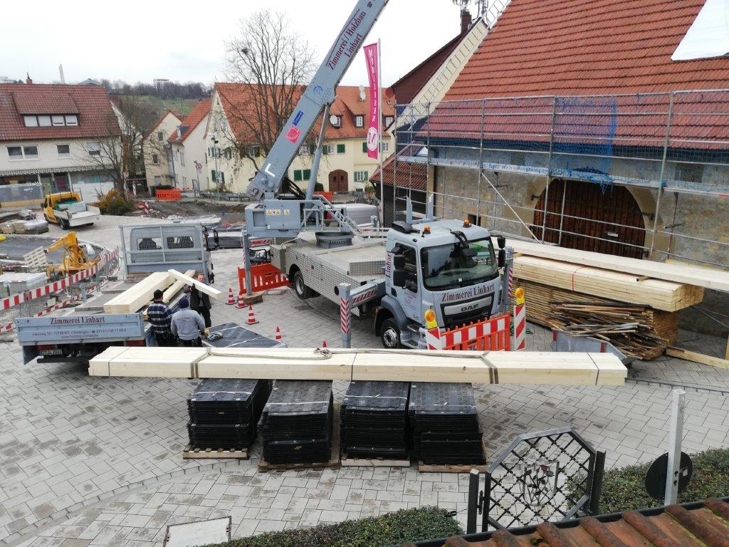 September 2019 - Beim Ausbaggern vor der Zehntscheuer wurden Fragmente einer Stabbrandbombe aus dem II. Weltkrieg gefunden. Es handelt sich dabei vermutlich um eine der Stabbrandbomben, die seinerzeit das alte Walmdach der Zehntscheuer vollständig abbrennen ließ. Die Überreste lagern nun im Ortsarchiv Hofen.