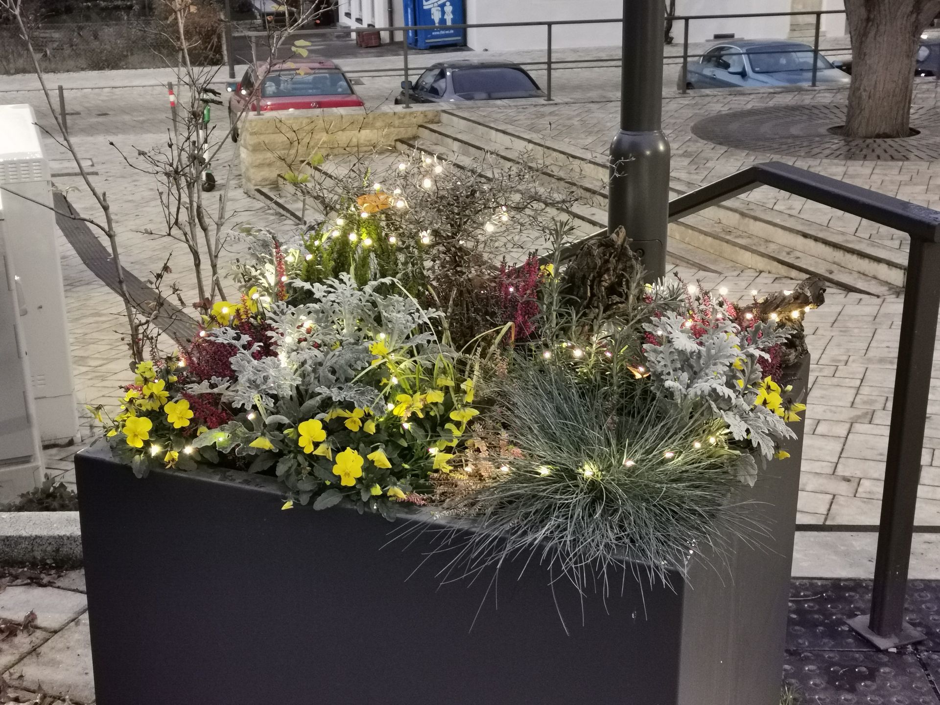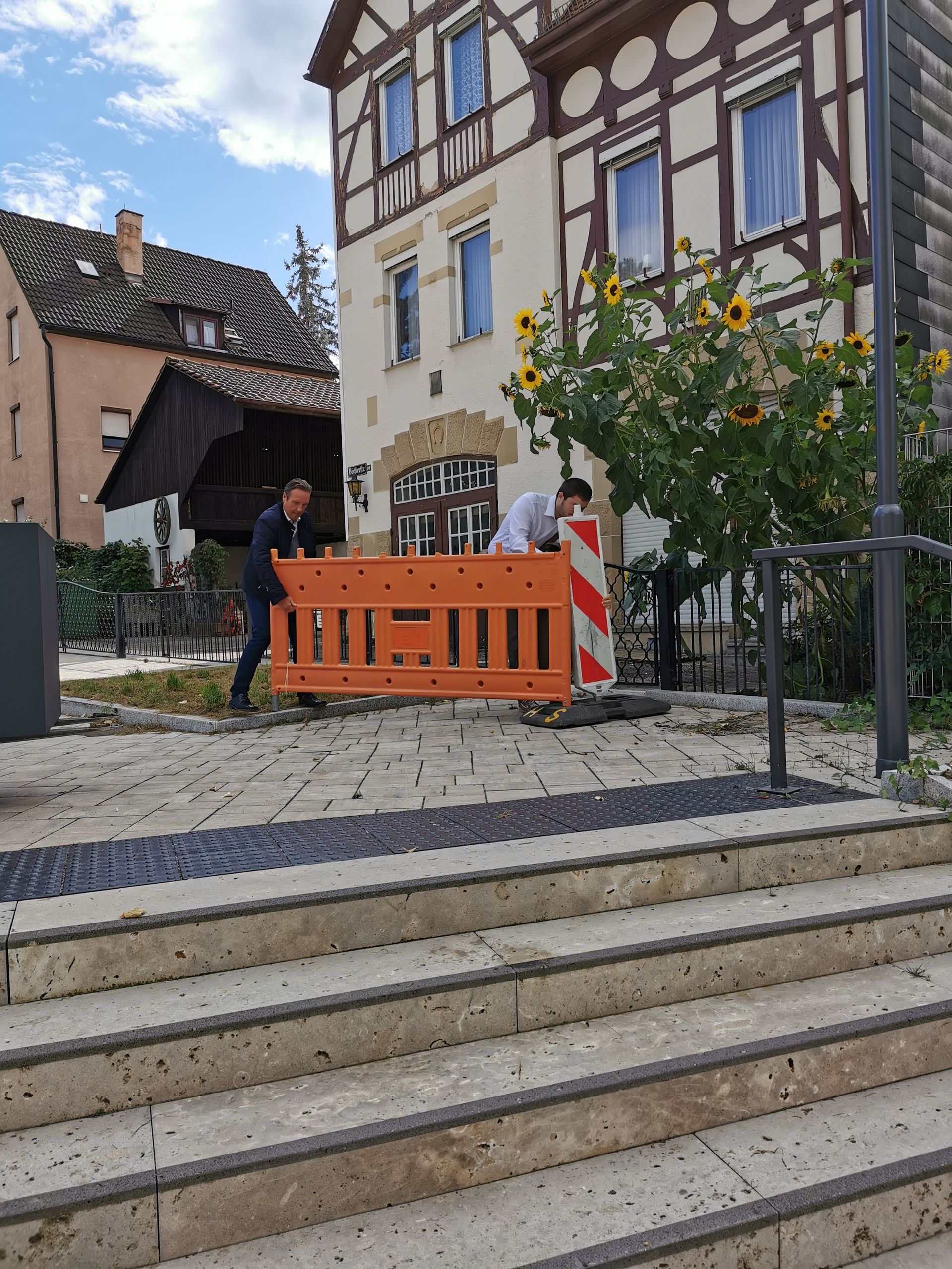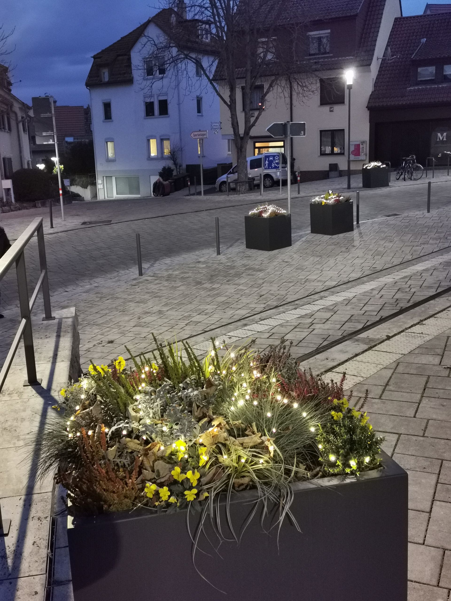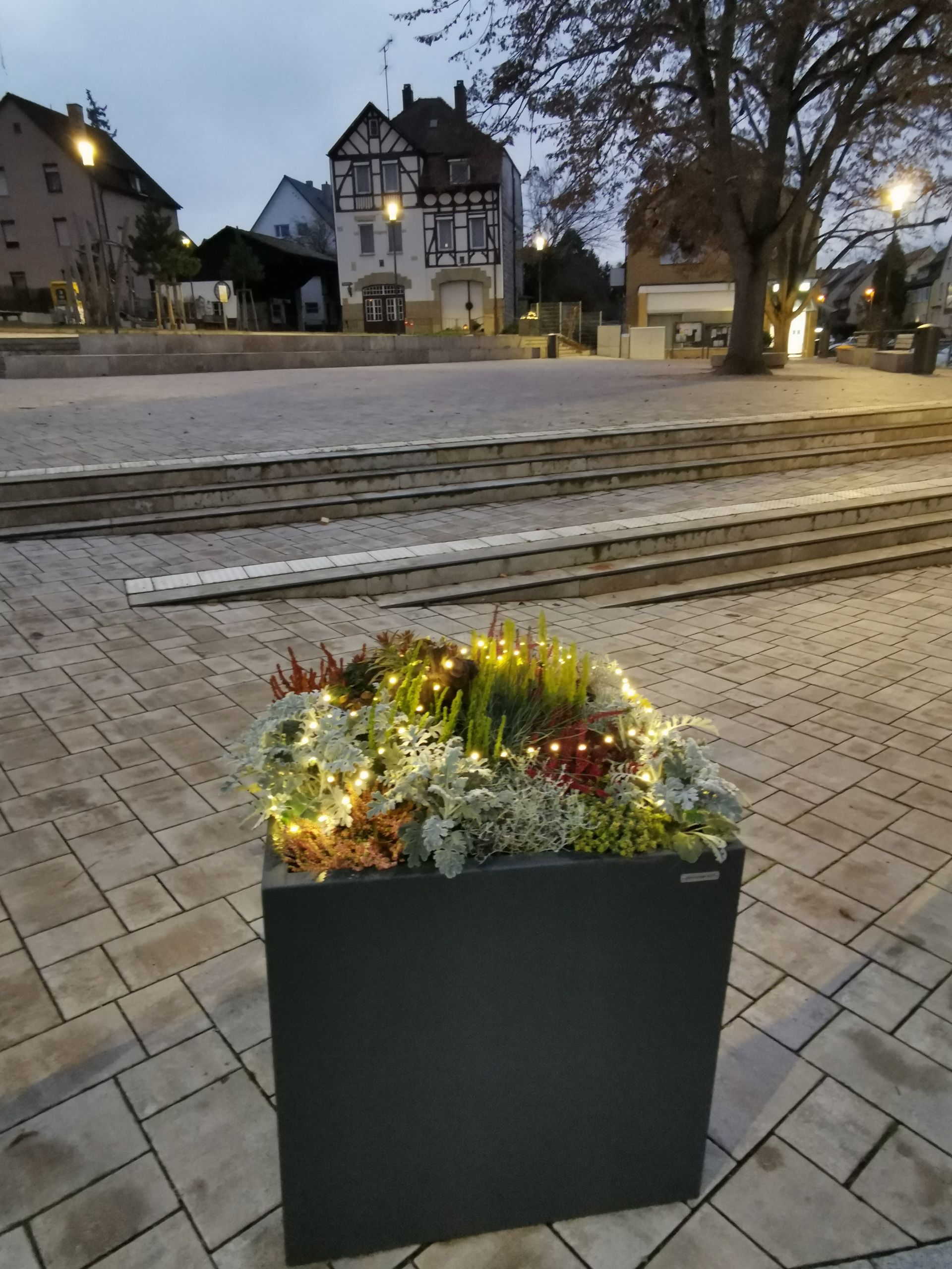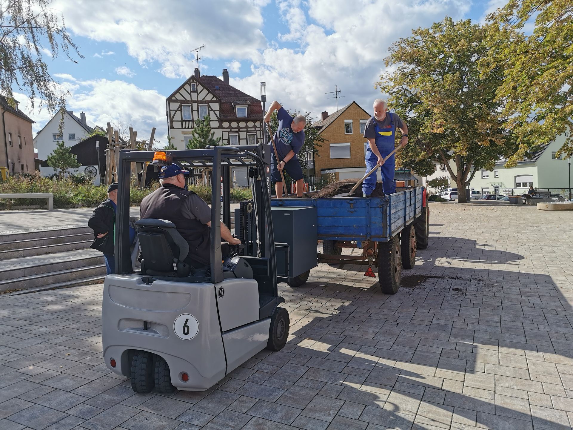 Nach Fertigstellung des Kelterplatzes kam der Wunsch nach mehr Farbe auf dem Kelterplatz auf. Und so konnten mit Unterstützung des Bezirksamts Mühlhausen am 29.09.2021 Pflanzkübel auf dem Kelterplatz Hofen aufgestellt werden. Der stellvertretende Bezirksvorsteher Andreas Schröder konnte gleich an seinem zweiten Arbeitstag kräftig mit anpacken. Für die sieben Pflanzkübel wurden Giespaten gefunden, so dass auch die Bewässerung sicher gestellt ist. Der Bürgerverein Hofen sorgt mit finanzieller Unterstützung des Bezirksamt Mühlhausen alljährlich für eine adventliche Beleuchtung.