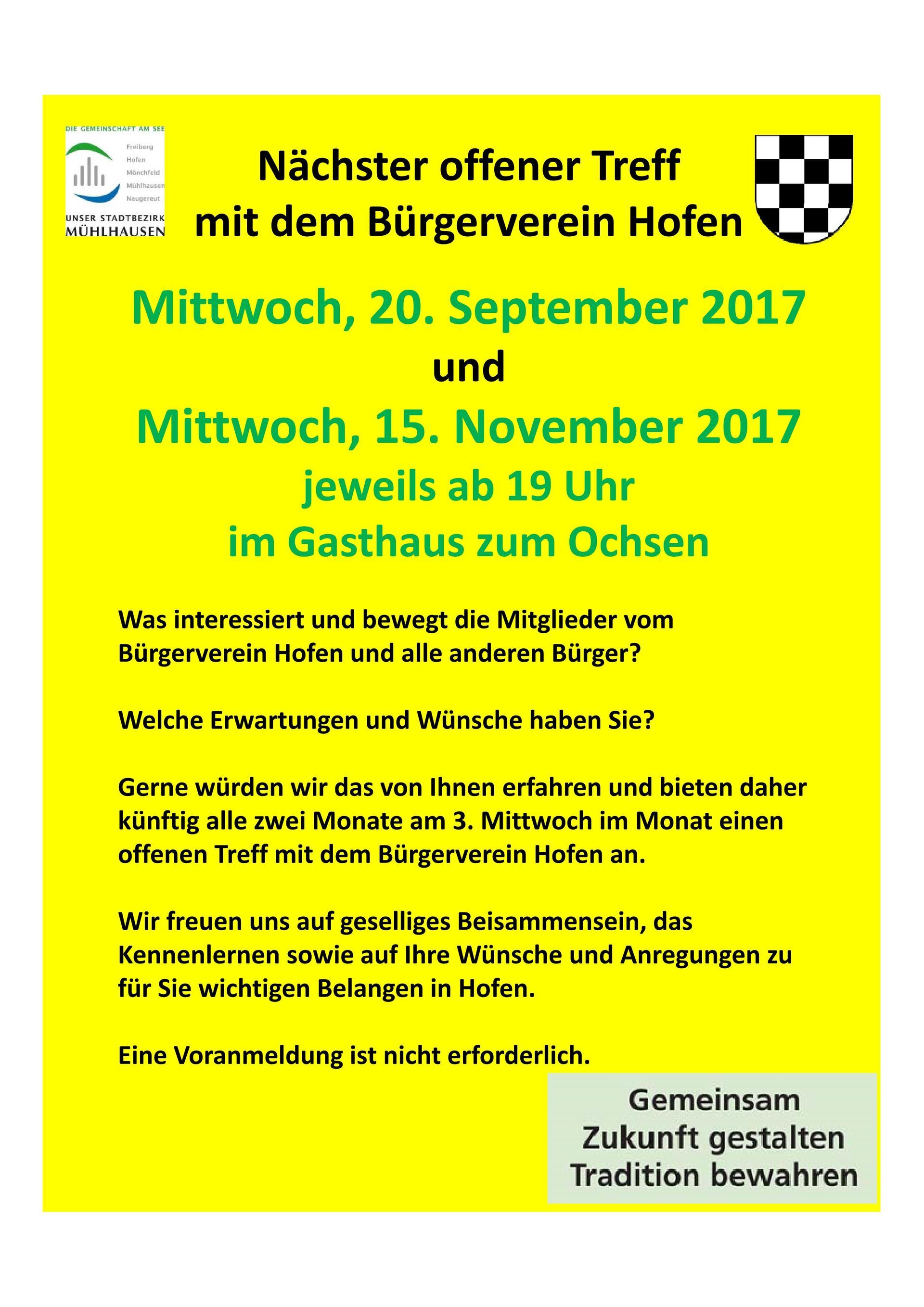 Was interessiert und bewegt die Bürger*innen und die Mitglieder vom Bürgerverein Hofen? Welche Erwartungen und Wünsche haben Sie?